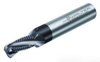 瓦尔特-普瑞特(Walter Prototyp)推出的TMD整体硬质合金螺纹铣刀可大幅降低螺纹切削成本,这种刀具结合了钻削、锪孔(90度)和螺纹切削三种工序,可以对M6至M16的内螺纹进行加工。对于孔螺纹和盲孔螺纹而言,最大标准螺纹深度为2倍直径。该刀具的特色是拥有三个铣削刃或三个切削刃,可确保较高的排屑率。Walter Prototyp TMD螺纹铣刀适用于加工铝合金和铸铁工件,它涉及三种独立的加工工艺:钻削、锪孔和螺纹加工。